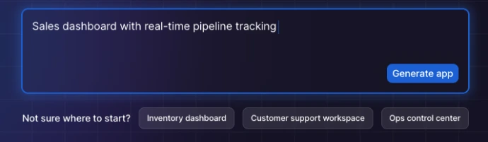 Herramientas internas empresariales: sinConvierta descripciones sencillas en aplicaciones internas funcionales: paneles, formularios, aprobaciones y automatizaciones.